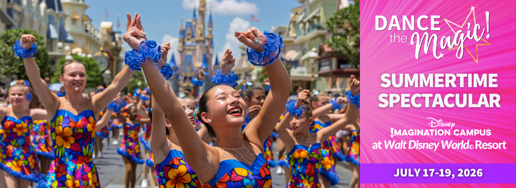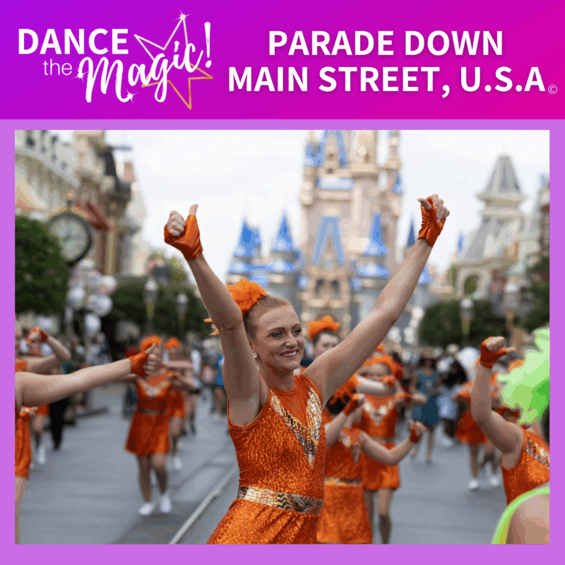 Parade at Magic Kingdom Park: Before the parade performance, dancers will work with our Dance the Magic Team in dress rehearsals to add a touch of Disney magic to the routine. Dancers will also have a professional photo shoot!